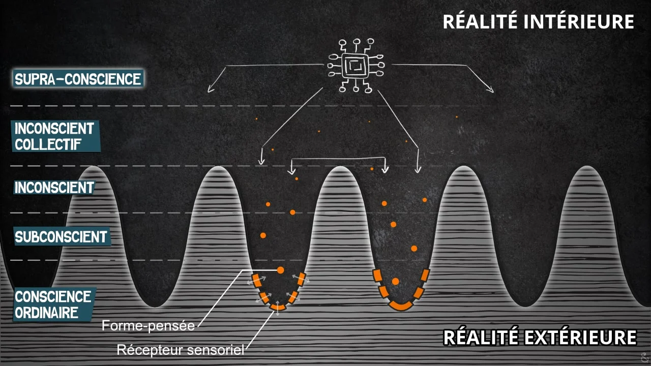 Plus loin, on découvre que toutes les mémoires se cumulent, formant un immense réservoir de connaissances laissées au fil des générations. C’est l’inconscient collectif, cher à Jung. À ce niveau, les informations se mélangent.